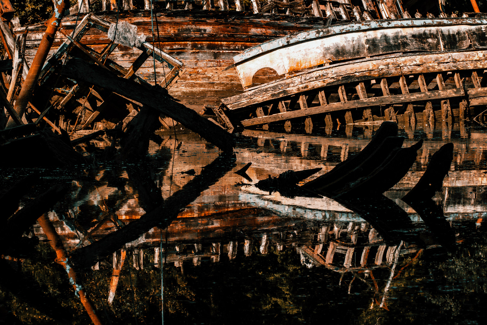 Ces bateaux, autrefois outils essentiels de pêche, de transport ou d’exploration, terminent leur vie exposés aux éléments. Le vent, l’eau salée, la végétation et le temps marquent leur structure, créant un paysage unique mêlant nature et vestiges humains.